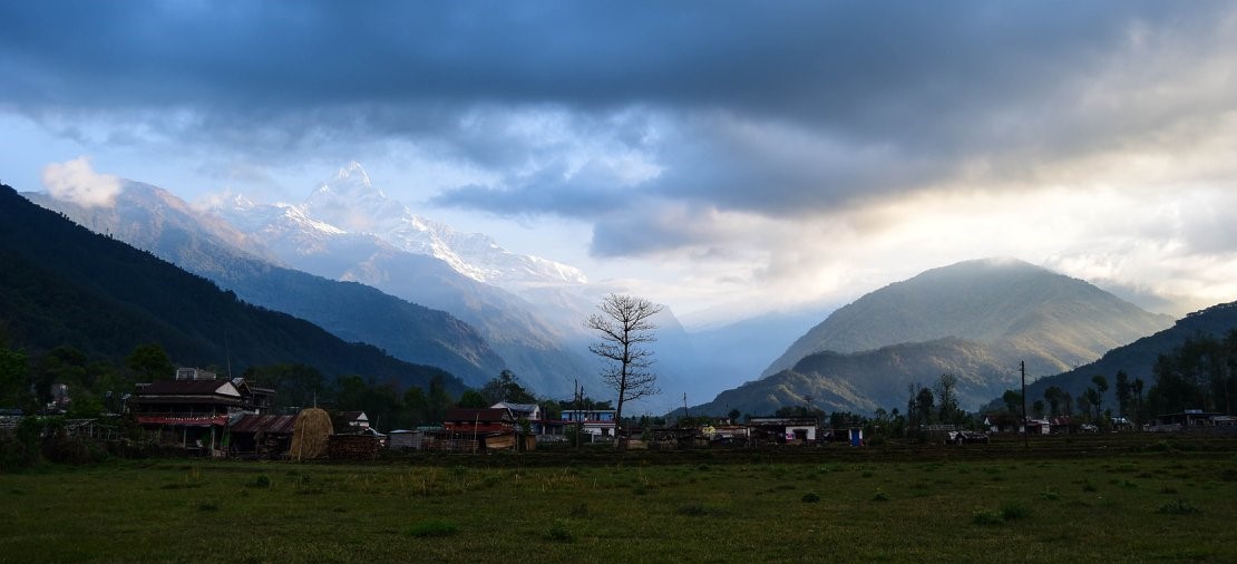 Il giorno seguente ci rimettiamo lo zaino in spalla e partiamo alla volta di Ghachok, un villaggio ai piedi del Machapuchare, uno dei picchi più suggestivi della catena dell’Annapurna. Con Marta e Morgane abbiamo deciso di attraversare la foresta ed i villaggi della regione piuttosto che fare dell’alpinismo. Il desiderio di conoscere meglio usi e costumi di questi popoli è più forte della voglia di sfidare i pendii scoscesi che disegnano il profilo del Nepal. Dopo svariate ore di marcia sotto un sole rovente ed aver dibattuto ad ogni svolta del sentiero, giungiamo infine a Ghachok che ancora fa giorno. Il villaggio è situato su un altopiano costellato di campi e suggestive case in stile Newar, sulle colline adiacenti le coltivazioni si dispongono su terrazze sempre più ripide. I pochi abitanti che incontriamo ci salutano calorosamente e ci invitano a proseguire sul sentiero principale fino ad arrivare ad un casolare interamente rinnovato. Annapurna Mon Village è il risultato del lavoro di Basanta, guida locale, e Thomas, cooperante di origine francese. Insieme hanno deciso di mettere su un B&B in stile tradizionale che offra diversi servizi ai viaggiatori e che permetta di investire una parte dei ricavati in attività utili per la comunità. Le buone vibrazioni e la stanchezza ci invitano a trascorrere la notte in quest’oasi sonnolenta nella valle del Seti. Dopo aver degustato l’immancabile dal bhat, -pietanza locale a base di riso bianco, zuppa di lenticchie e verdure saltate nel curry e altre spezie-, Thomas ci invita tutti a sedere intorno al fuoco acceso per l’occasione. Facciamo allora la conoscenza di altri due soci : Chris e Hugo. Tedesco di nascita e nepalese di adozione, Chris è nel paese da diversi anni e ha visto la società nepalese cambiare profondamente. “Durante la guerra civile c’erano posti di blocco ovunque e i maoisti in pratica controllavano le montagne e le zone rurali”, ci racconta tra un tiro di sigaretta e l’altro. “È là che vivono gli strati più poveri e cosi’, facendo leva sul malcontento popolare, i maoisti miravano a rovesciare la monarchia parlamentare”. Il Nepal mostra gravi iniquità nella distribuzione della ricchezza: la maggior parte della produzione agricola è concentrata nelle regioni a ridosso dell’India, più fertili e pianeggianti. Il centro economico del paese si situa nella congestionata valle di Kathmandu che, per ironia della sorte, è stata anche la più duramente colpita dal terremoto del 2015. Nonostante possieda ingenti risorse idriche, il Nepal dipende da India e Cina per sopperire ai suoi bisogni energetici e rimane, tra l’altro, il paese più povero d’Asia. E come se non bastasse la corruzione è endemica e ha proteso le sue grinfie perfino sugli aiuti internazionali ricevuti dopo il sisma.