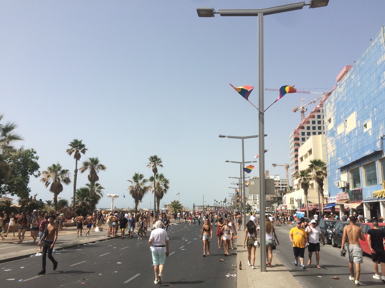 Il serpentone umano si snoda a lato della bianca spiaggia di Tel-Aviv, passa per il lungomare e viene fatto confluire in un parco allestito per la festa poco prima di Jaffa, l’antica parte araba della città. Raggiungo la pensilina dell’autobus e lascio che questa sorregga il mio corpo sfinito dai giorni di viaggio per lo stato di Israele e dal matrimonio per cui mi trovo nell’antiporta del Medioriente: sono arrivato dall’Europa con altri ex-compagni di università per assistere all’unione di uno del gruppo con la donna che è ormai sua moglie.